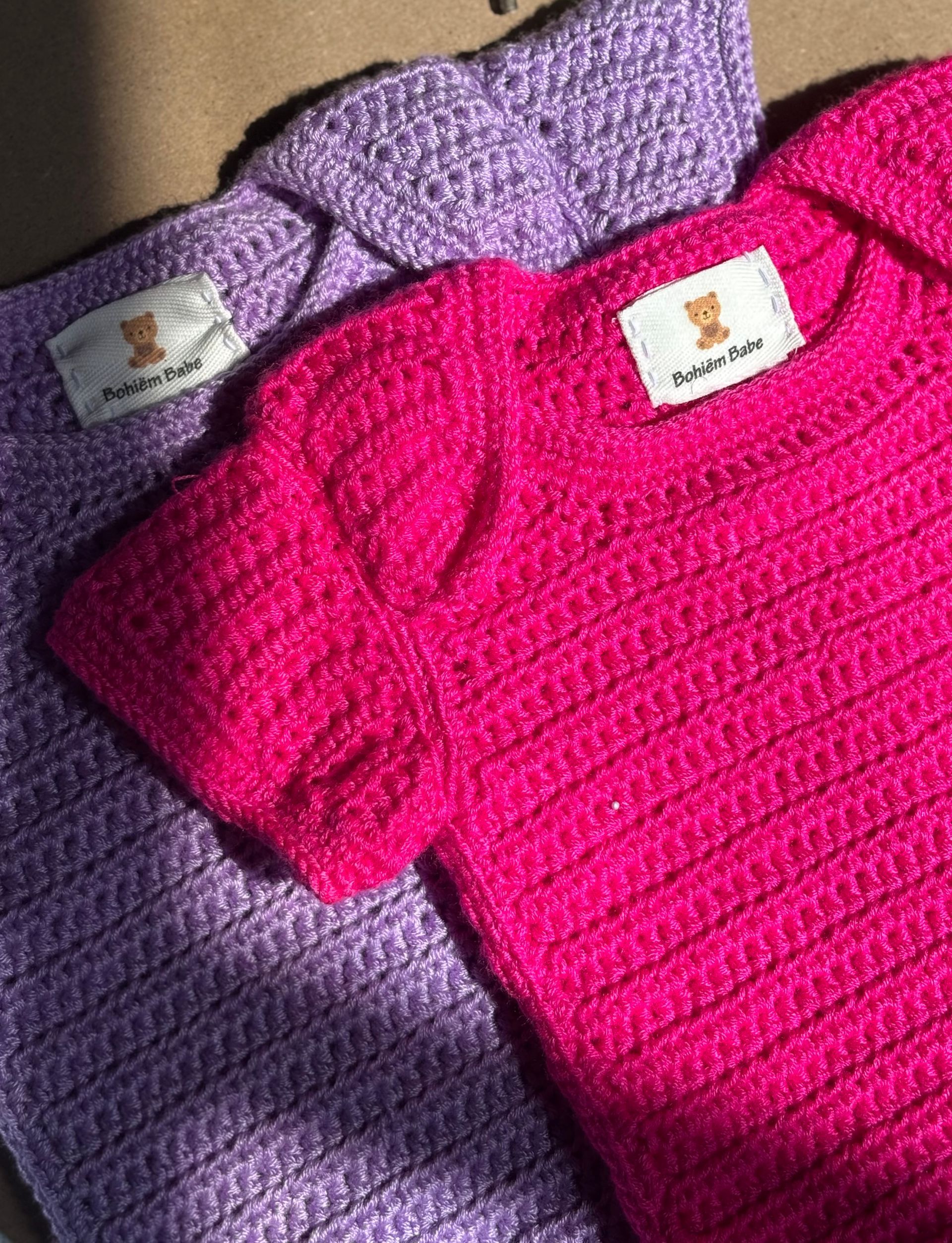 • Hand-crocheted with a soft, breathable yarn blend